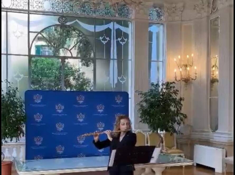 eventi19 Aprile 2023Monica Moroni intona al flauto l’inno nazionale di San Marino per la delegazione proveniente dall’Ossezia del Nord