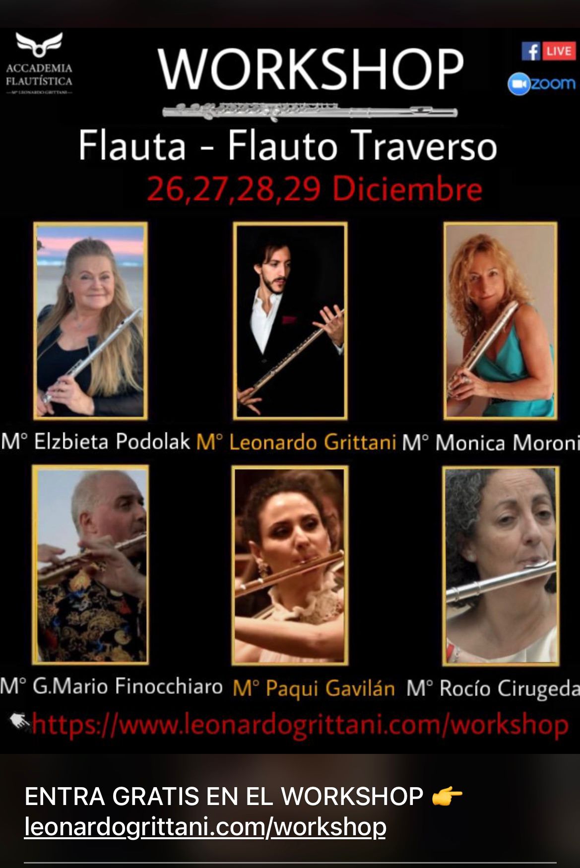 L’Academia Flautística Internacional “Leonardo Grittani” presenta un innovativo workshop gratuito di flauto traverso, in programma dal 26 al 29 dicembre. L’evento, che unisce tradizione e modernità, si svolgerà sia attraverso Facebook nel gruppo “Flauto che Pasión: NeoFlautArmonia” sia su Zoom per un’esperienza più interattiva e diretta.